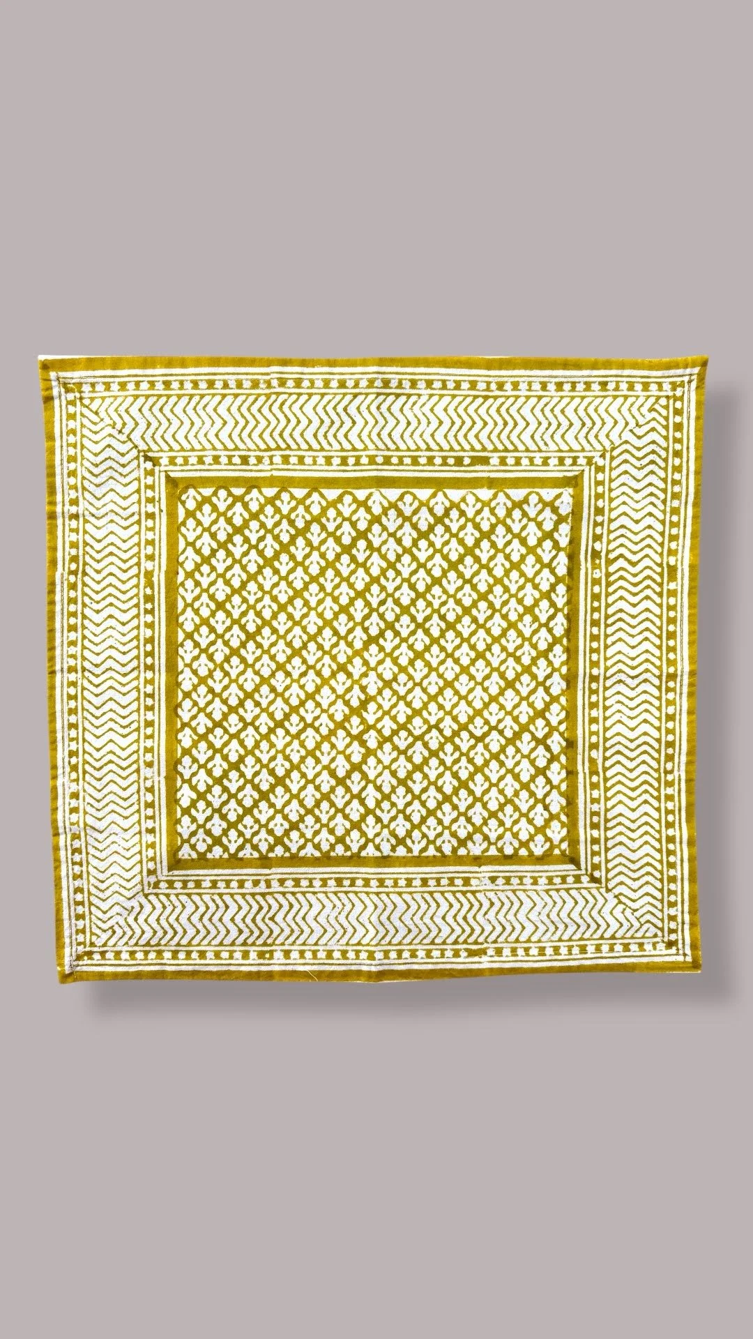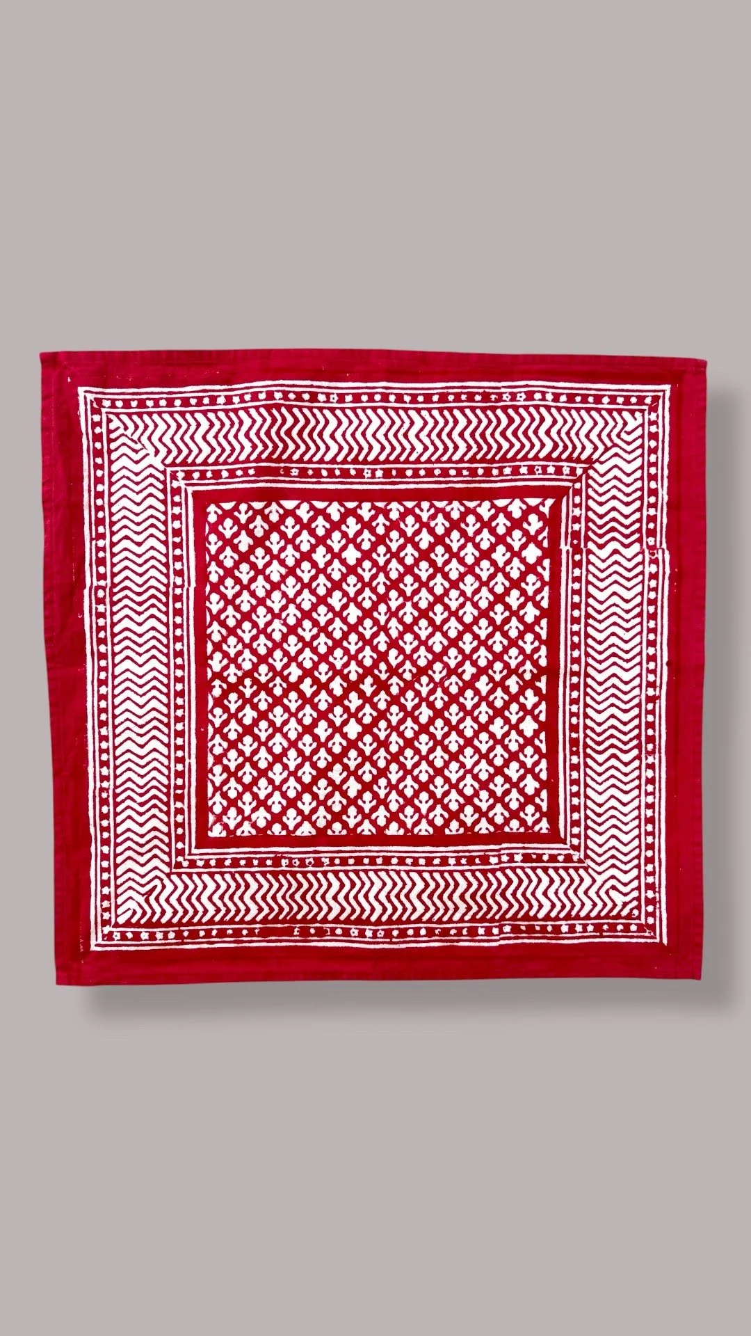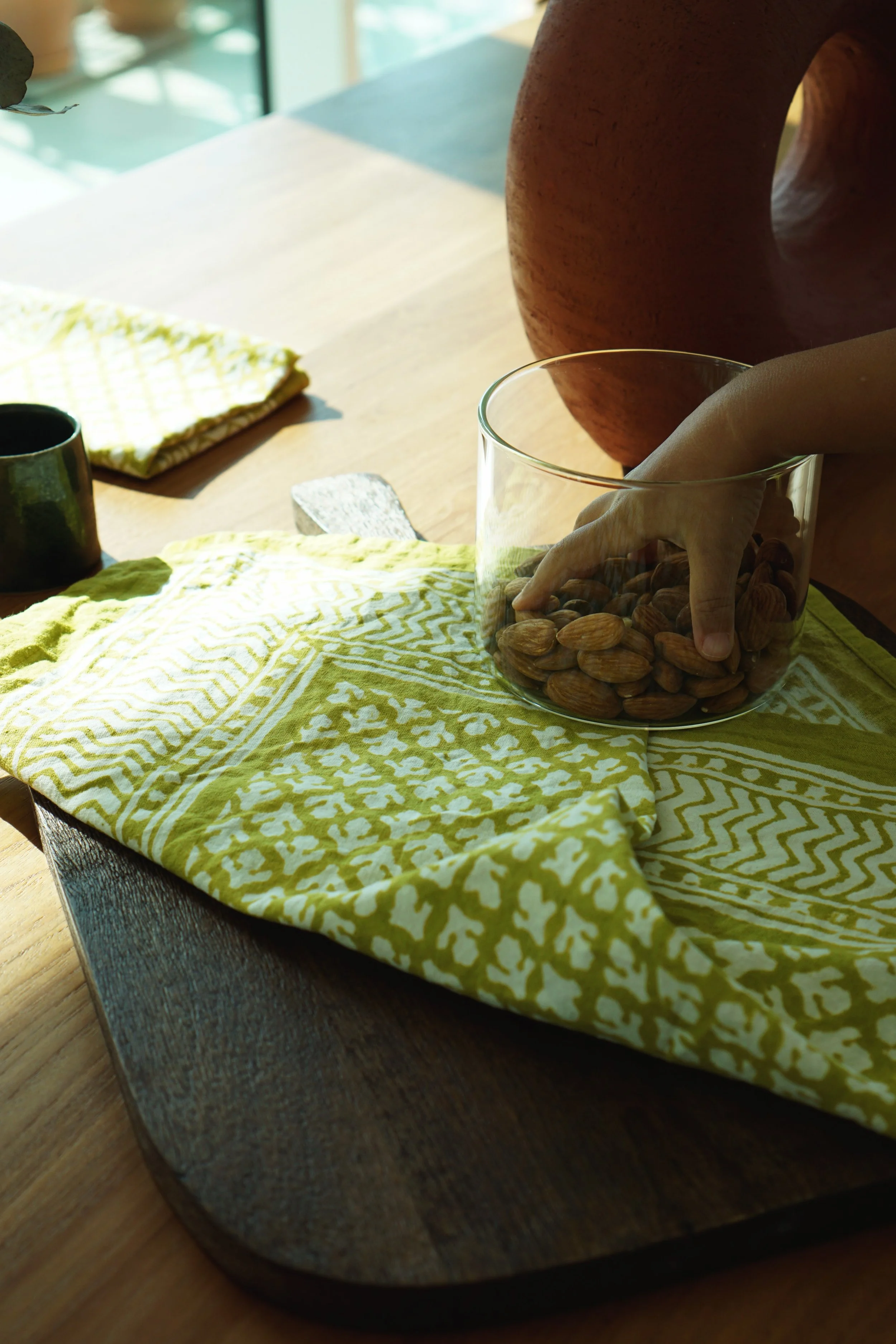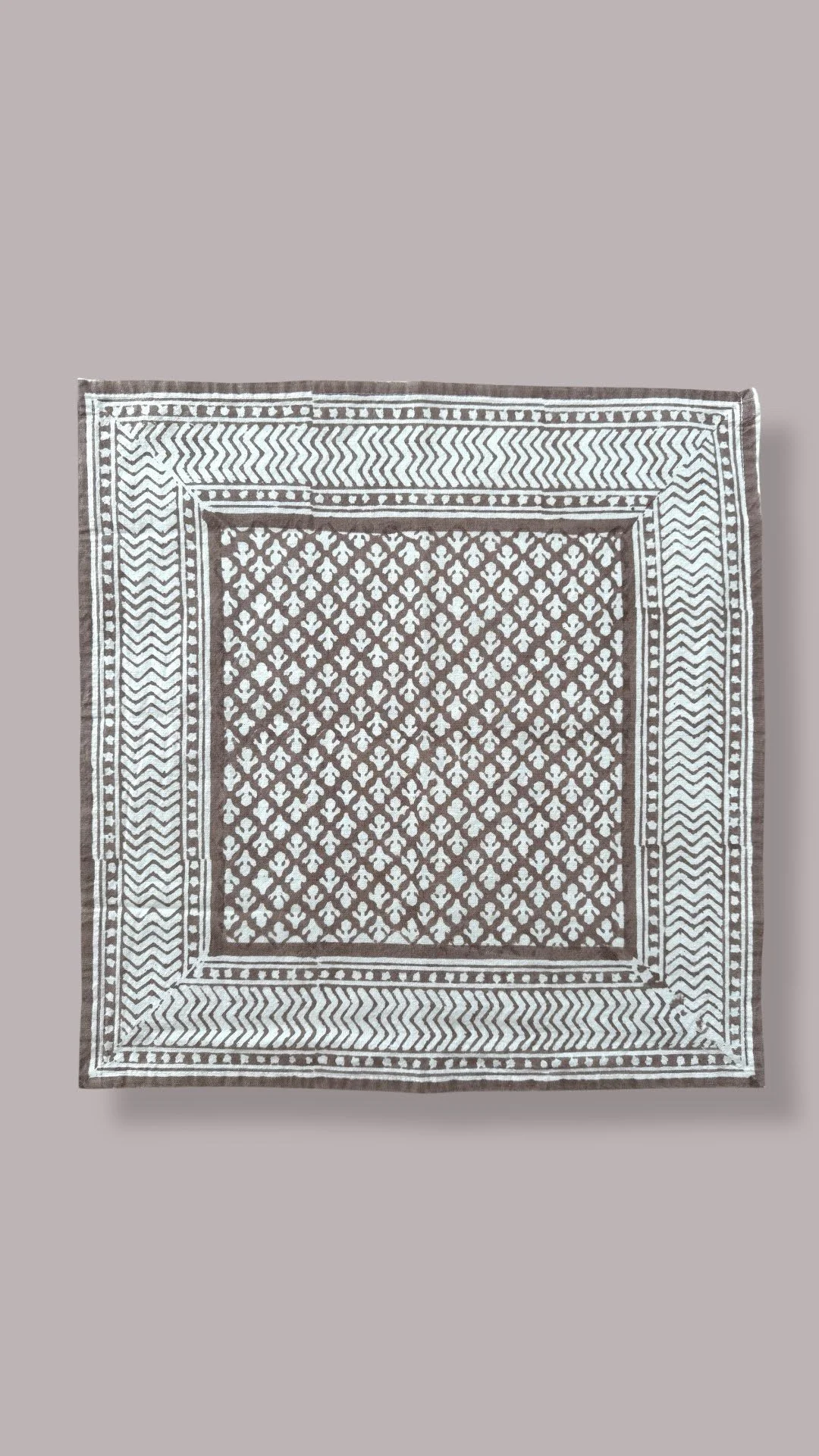 Each of our products is handmade in collaboration with a family-run factory that continues to preserve this ancestral know-how. Wooden blocks are carved by hand, then dipped into natural pigments and pressed onto soft cotton fabric, layer after layer. The slight irregularities in color and motif are not flaws, they are the signature of a truly handmade object.