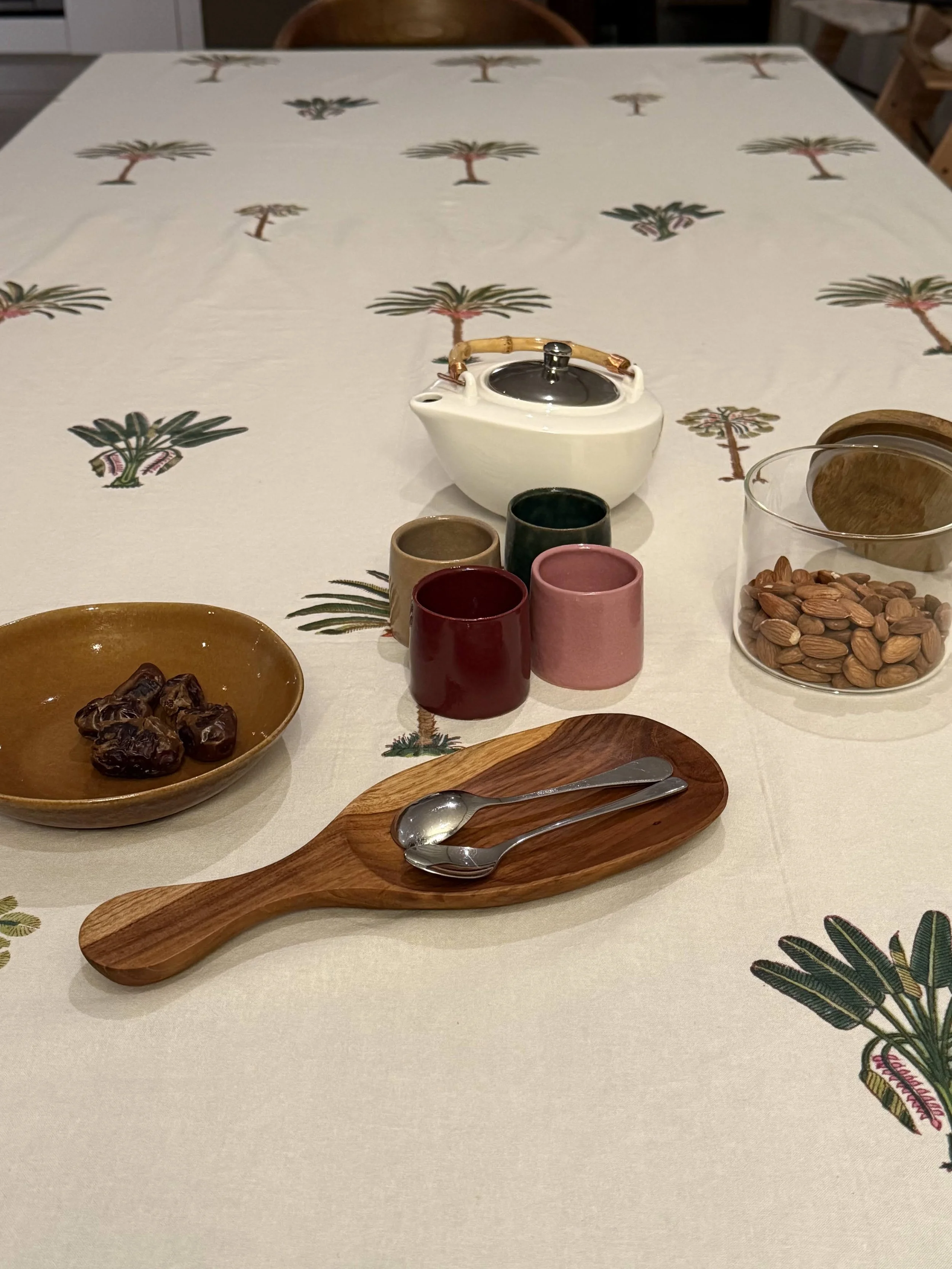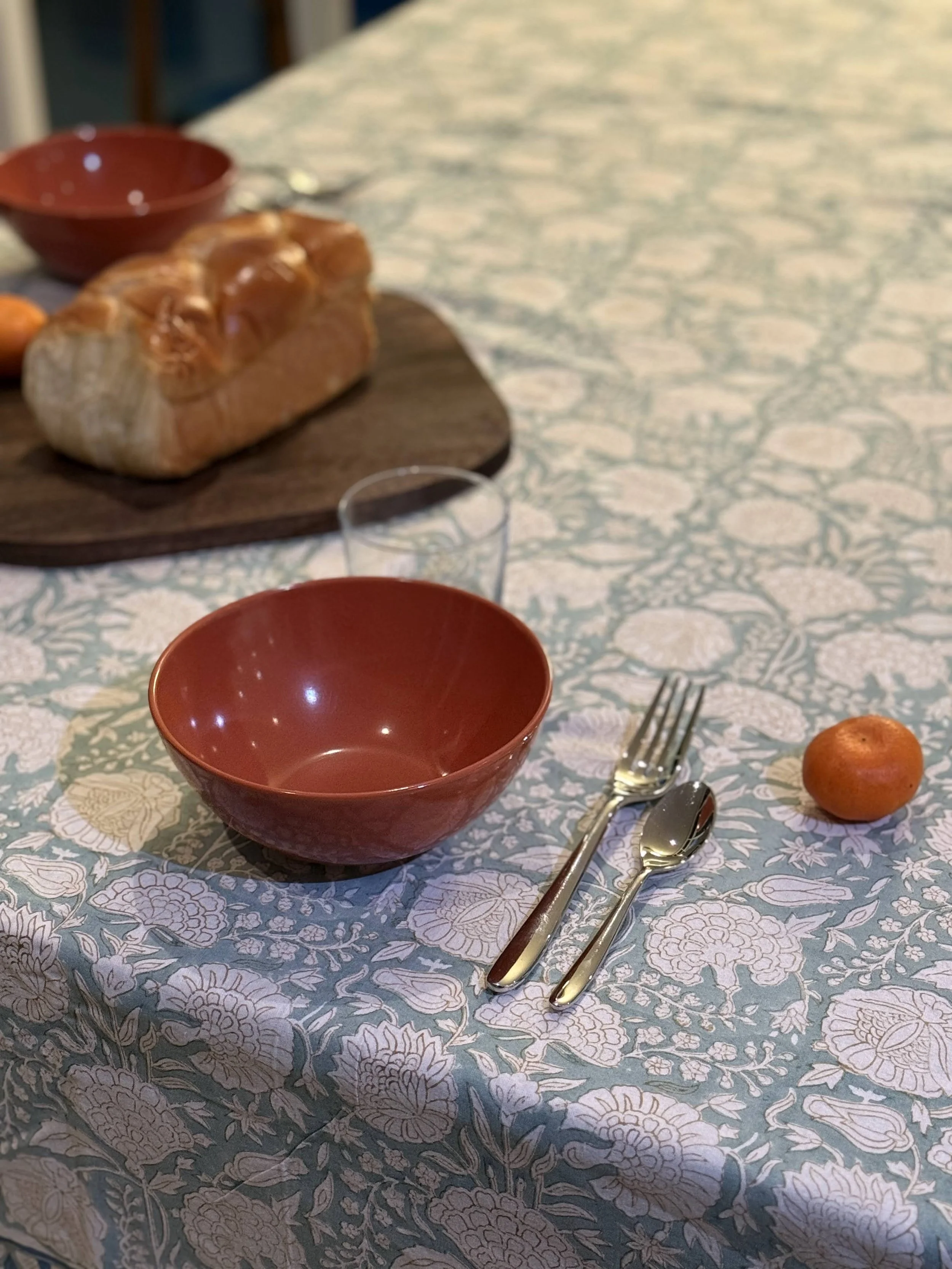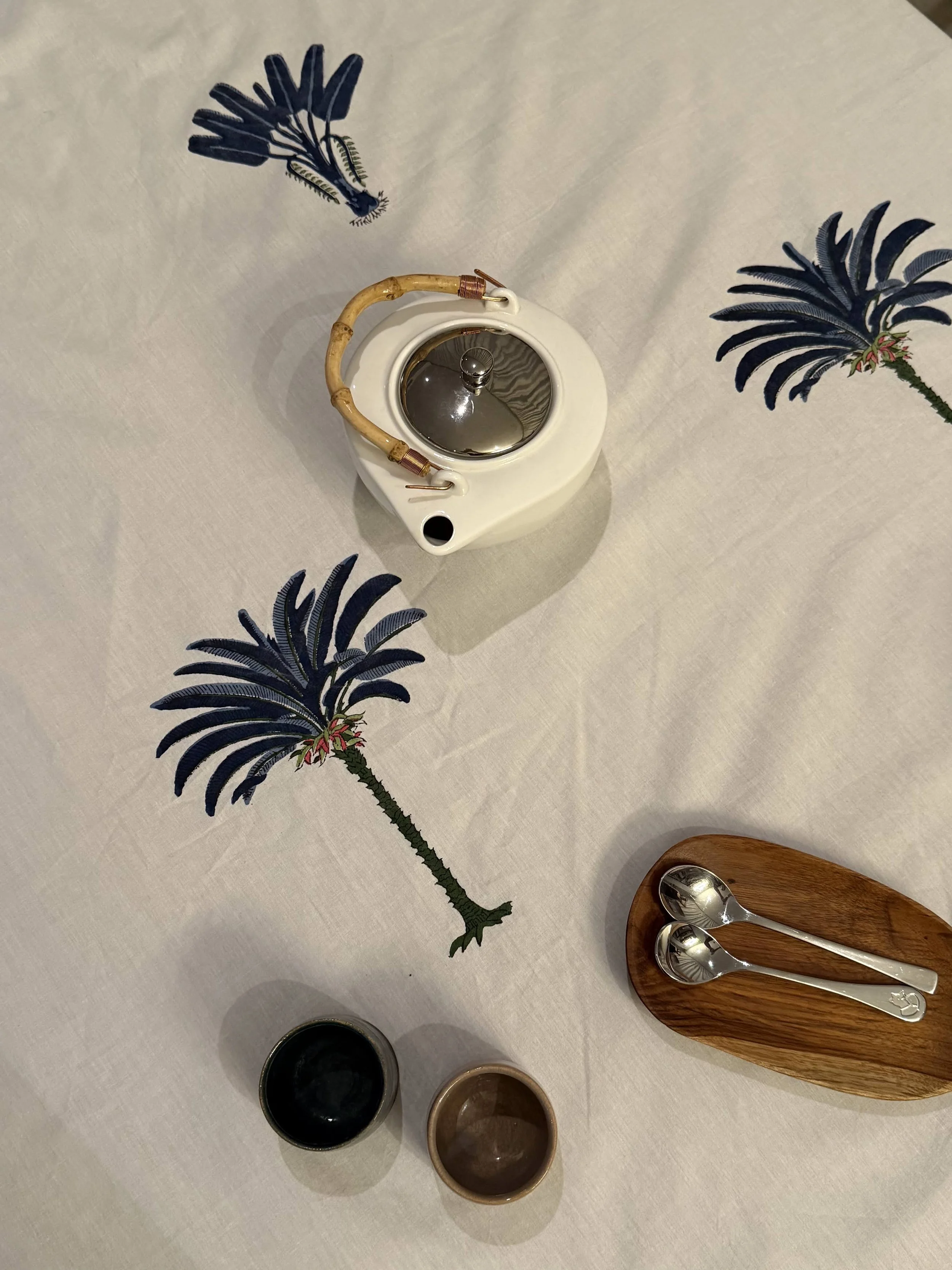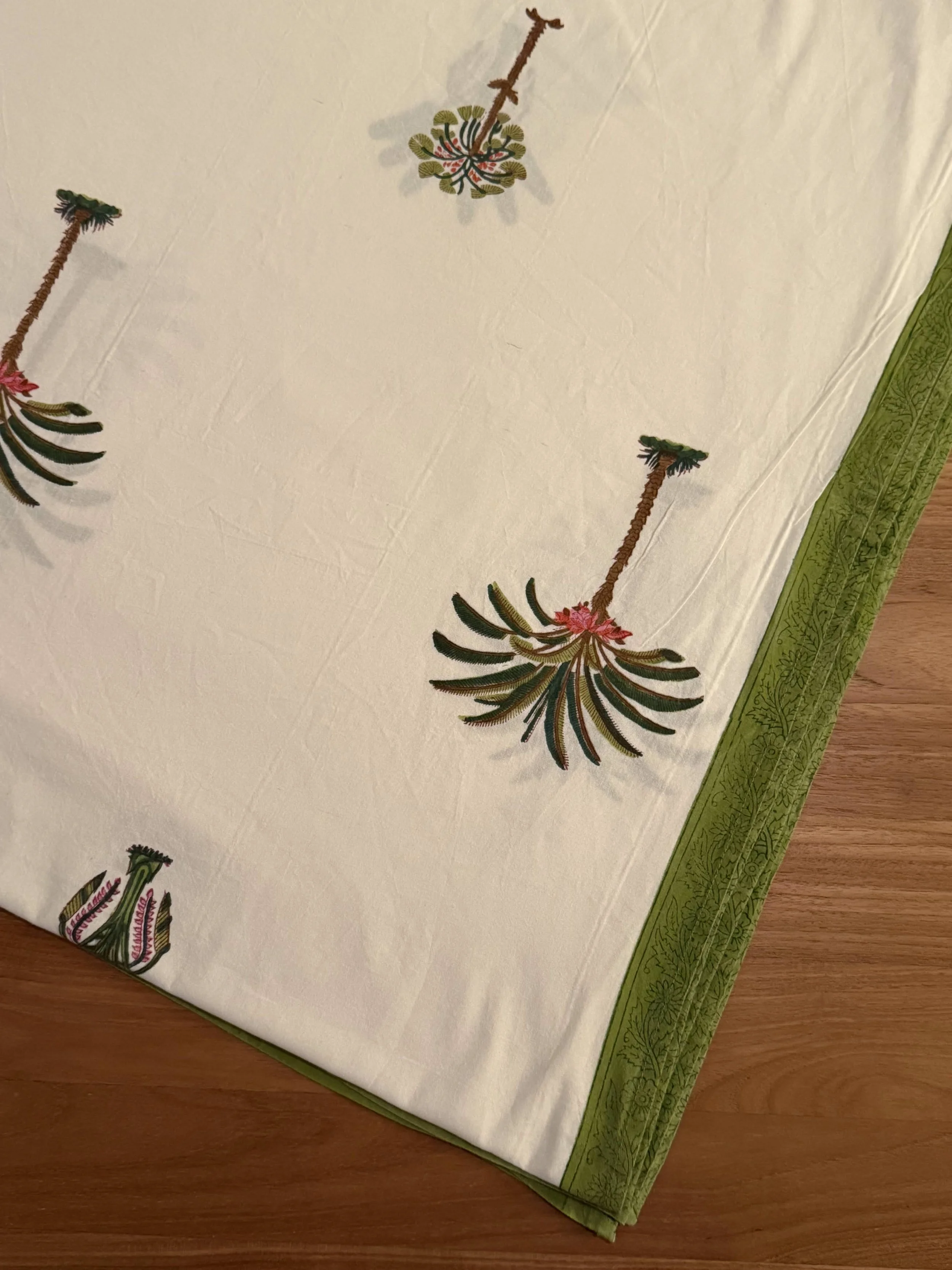 Each of our products is handmade in collaboration with a family-run factory that continues to preserve this ancestral know-how. Wooden blocks are carved by hand, then dipped into natural pigments and pressed onto soft cotton fabric, layer after layer. The slight irregularities in color and motif are not flaws, they are the signature of a truly handmade object.