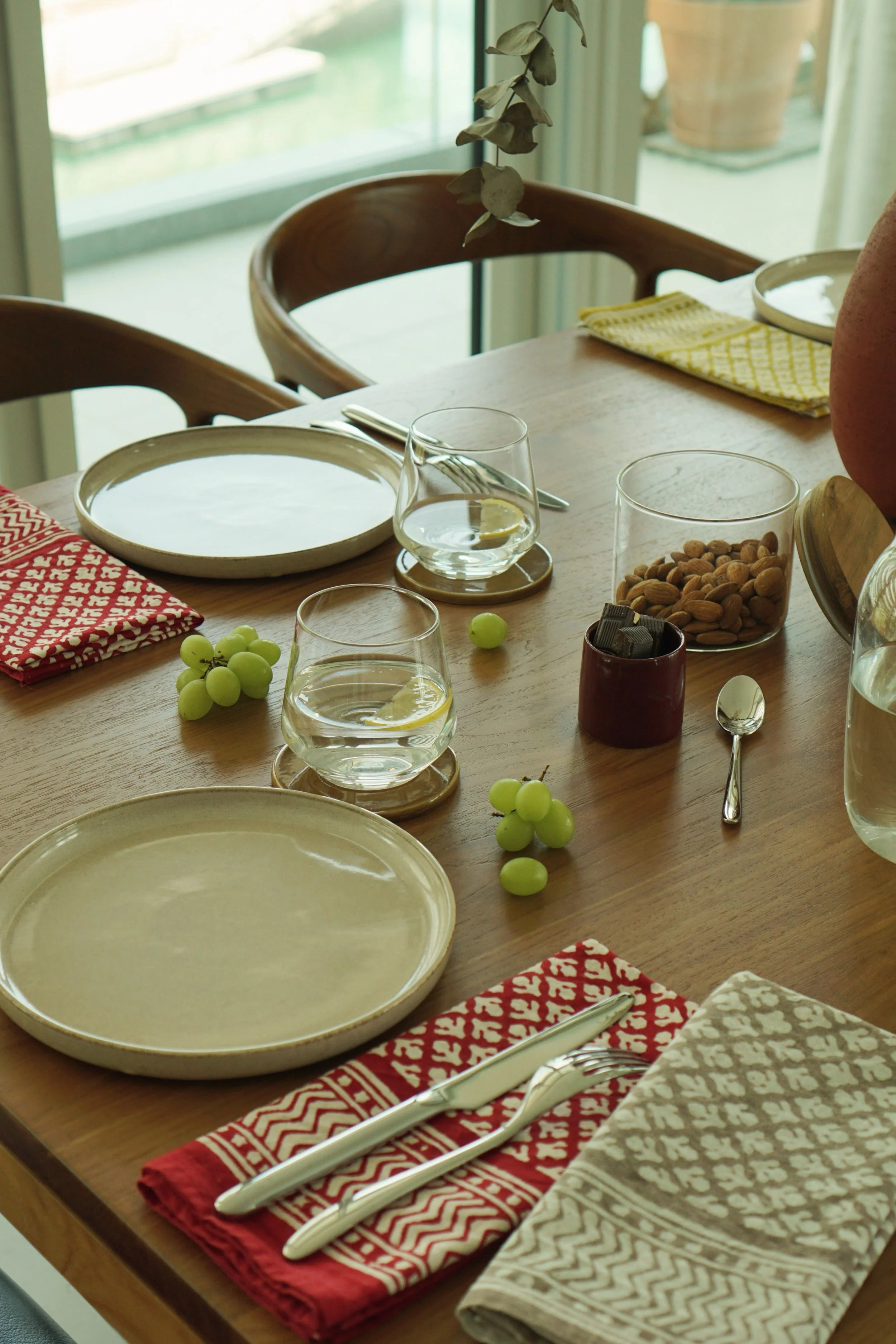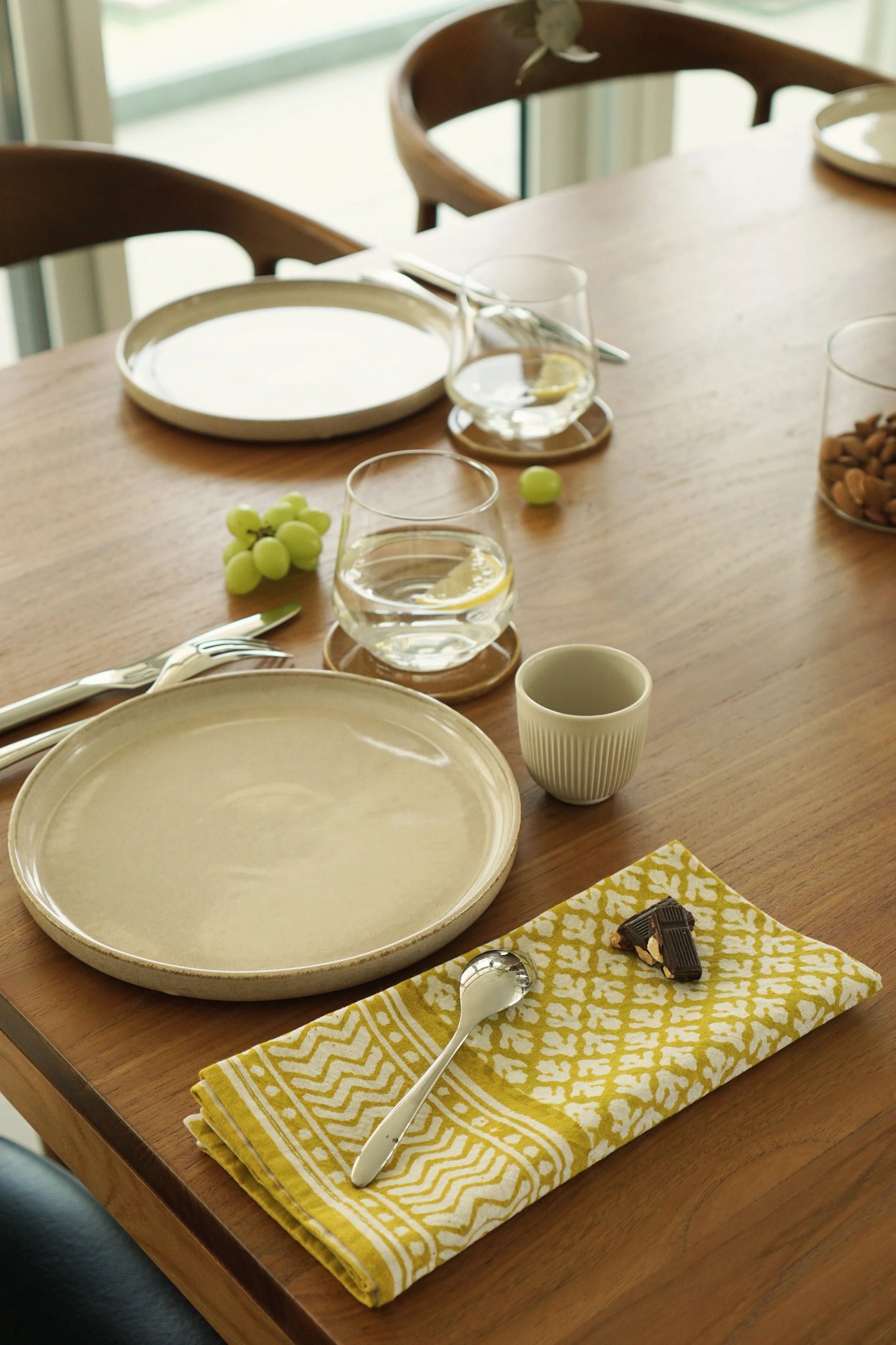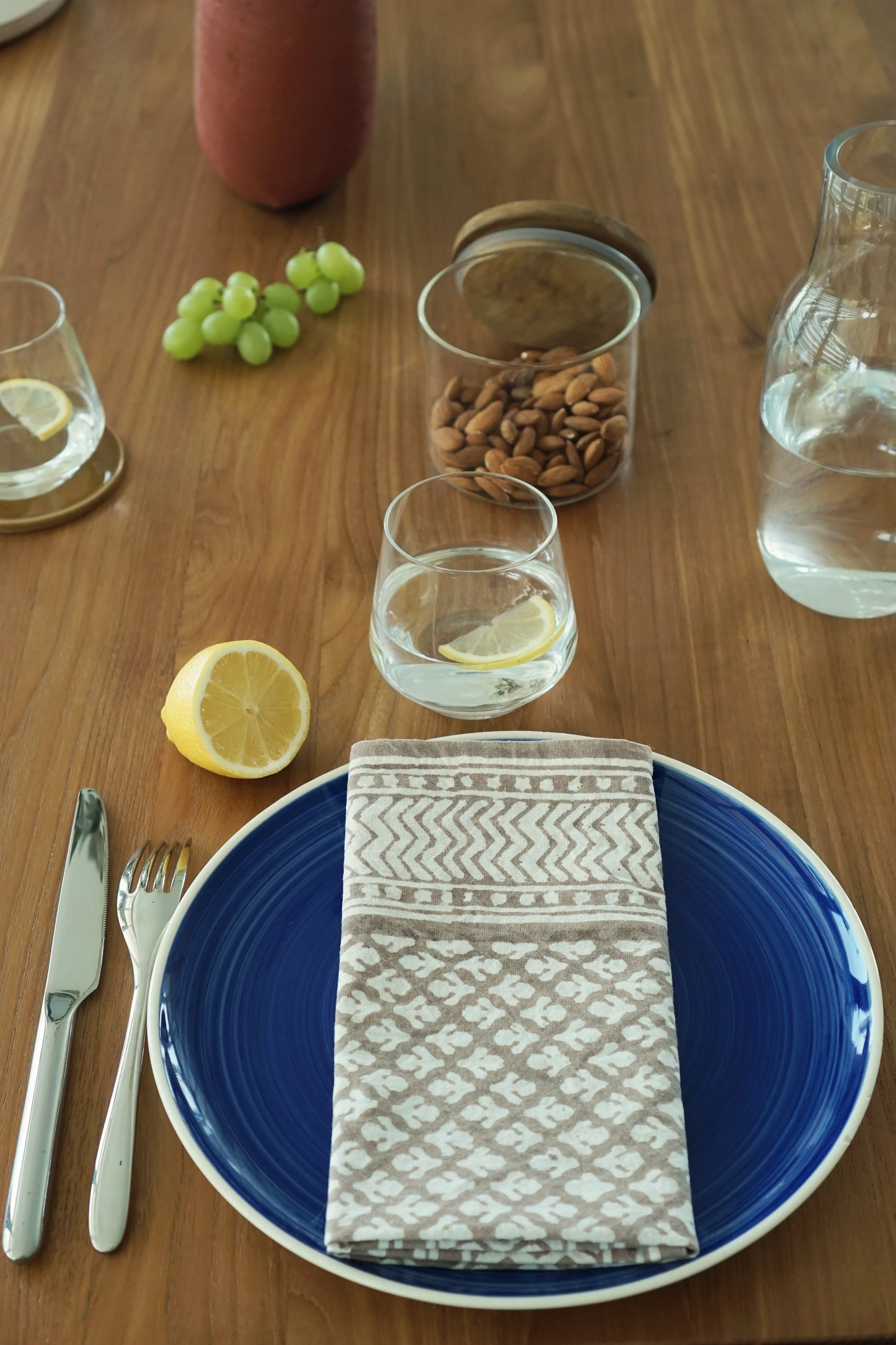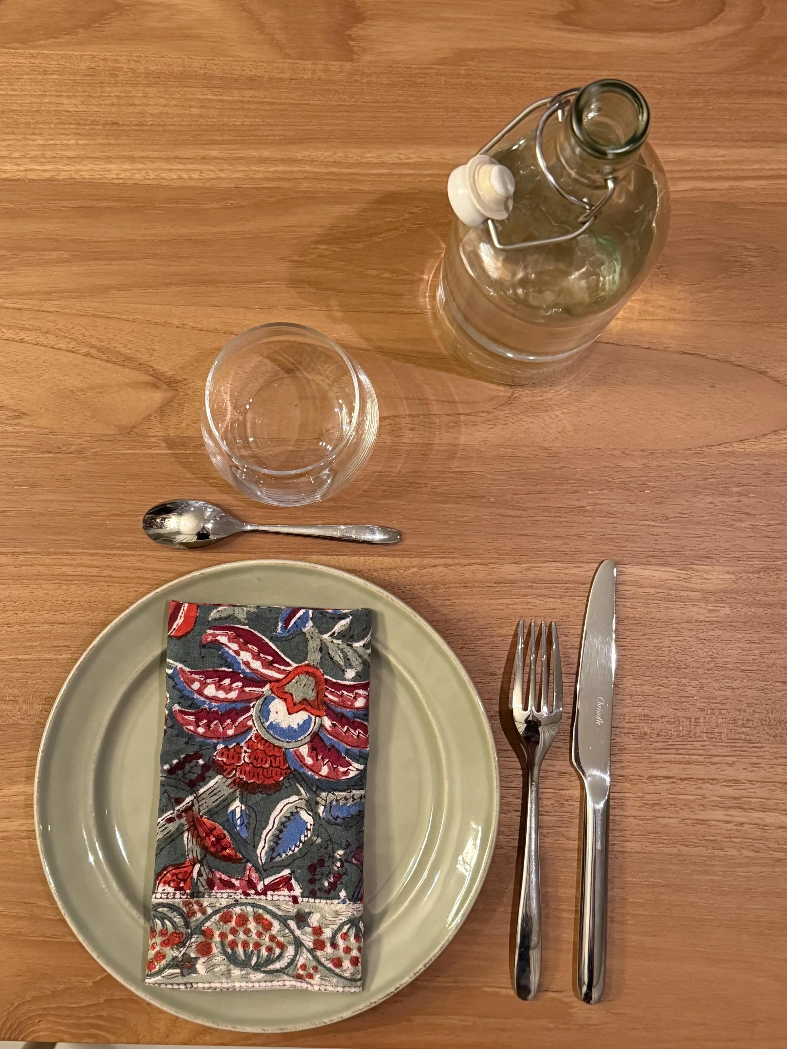 Each of our products is handmade in collaboration with a family-run factory that continues to preserve this ancestral know-how. Wooden blocks are carved by hand, then dipped into natural pigments and pressed onto soft cotton fabric, layer after layer. The slight irregularities in color and motif are not flaws, they are the signature of a truly handmade object.